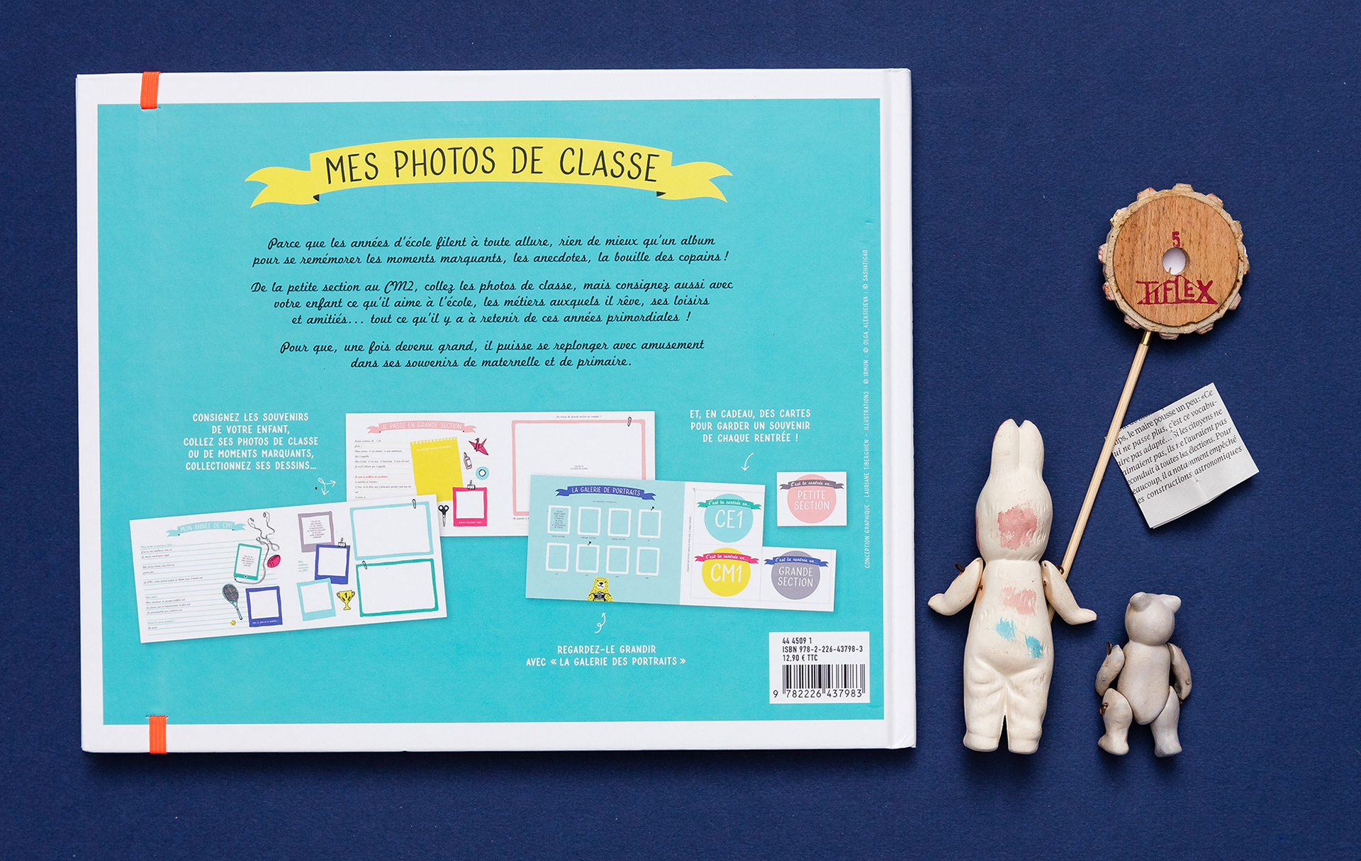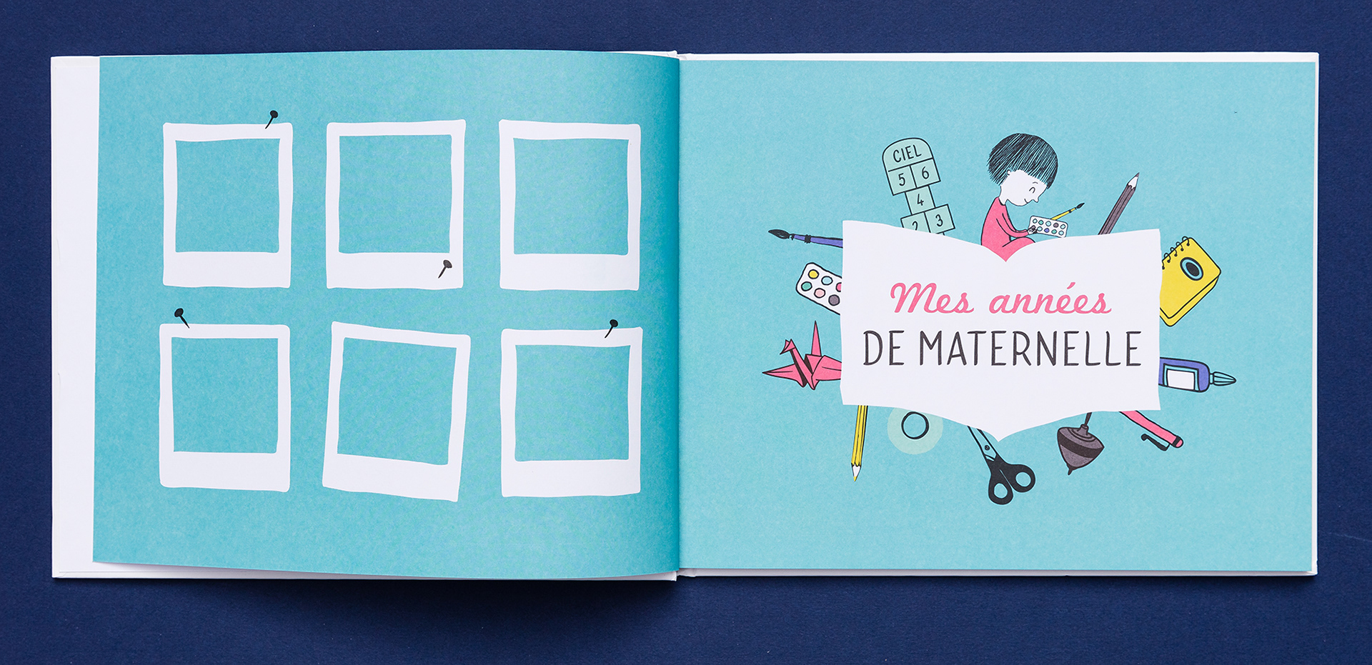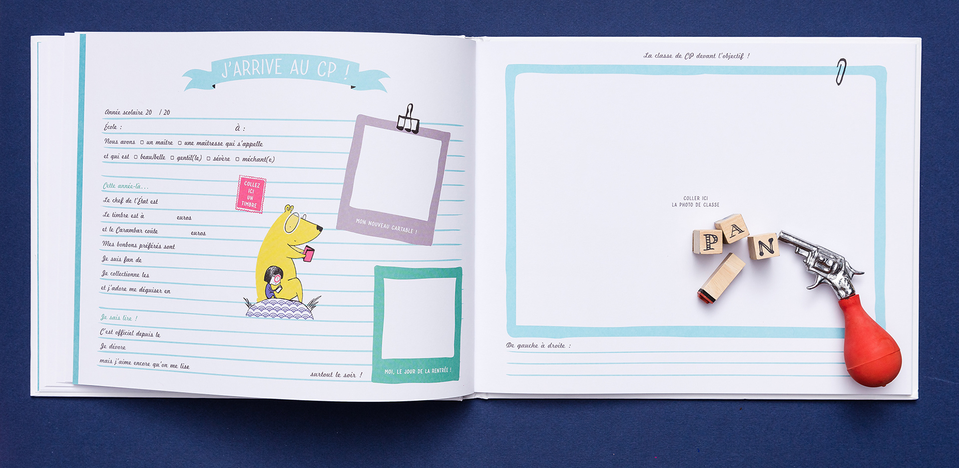 Co-conception, illustration et maquette d’un album de photos de classe à compléter.